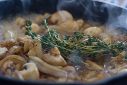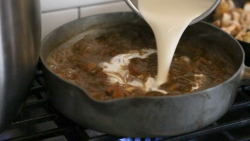 Set meat aside, add mushrooms and onions to pan and saute until softened and beginning to brown, about 10 minutes.