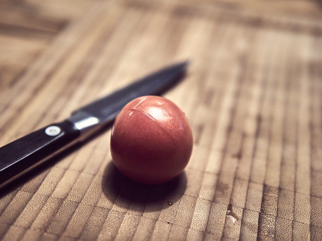 Empezamos haciendo una cruz sobre la piel de los tomates, sumergiéndolos 20 segundos en agua hirviendo y dejándolos en un bol con agua y hielo para poder pelarlos fácilmente.