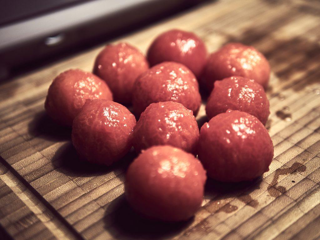 En un bote hermético metemos los tomates pelados con el aceite, el ajo y la ramita de romero. Metemos el bote cerrado en el baño a 65ºC durante unas 5 horas.