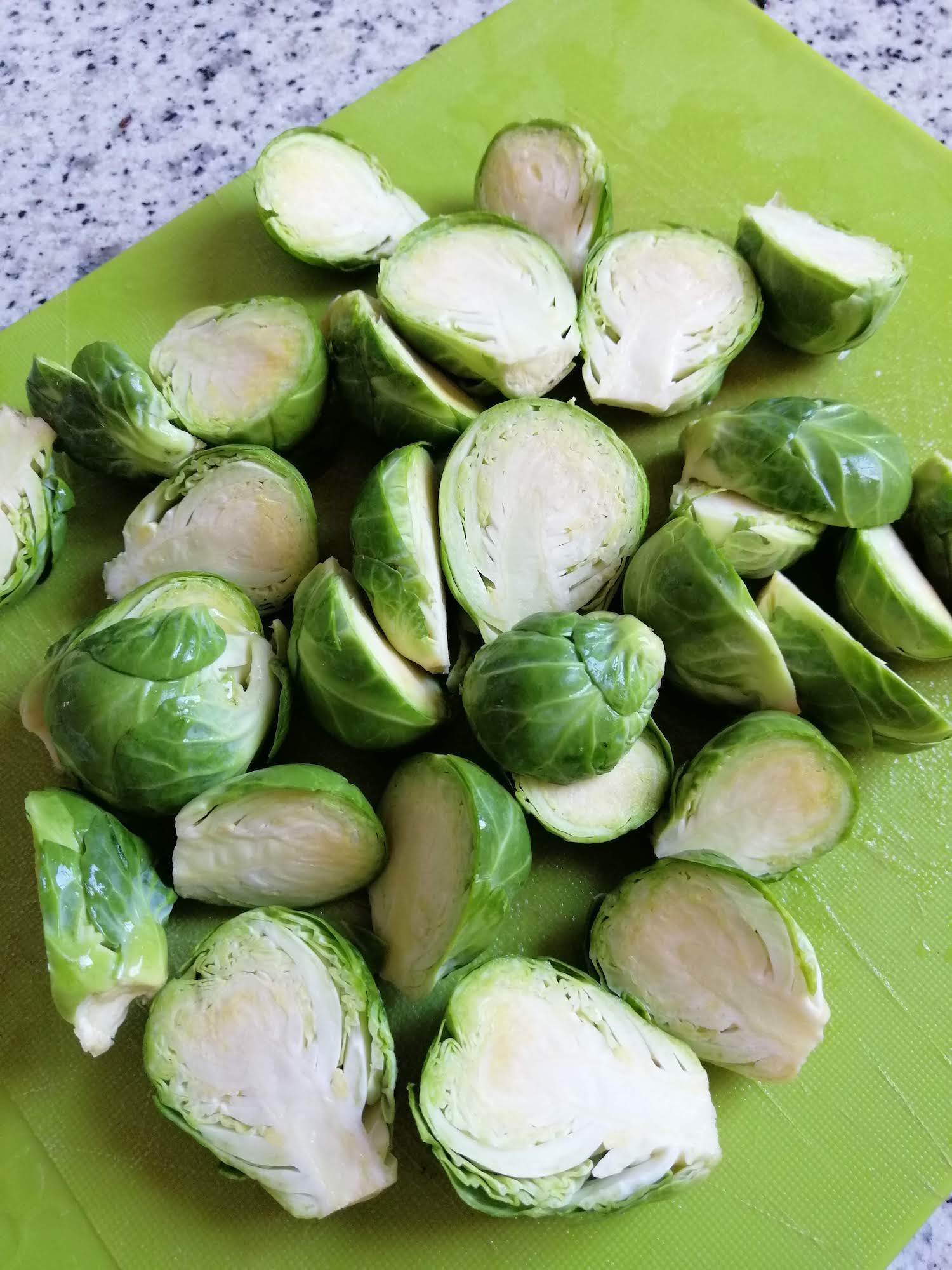 Coupez les choux en 2 et mettez sous vide avec de l'ail haché, sel et poivre.