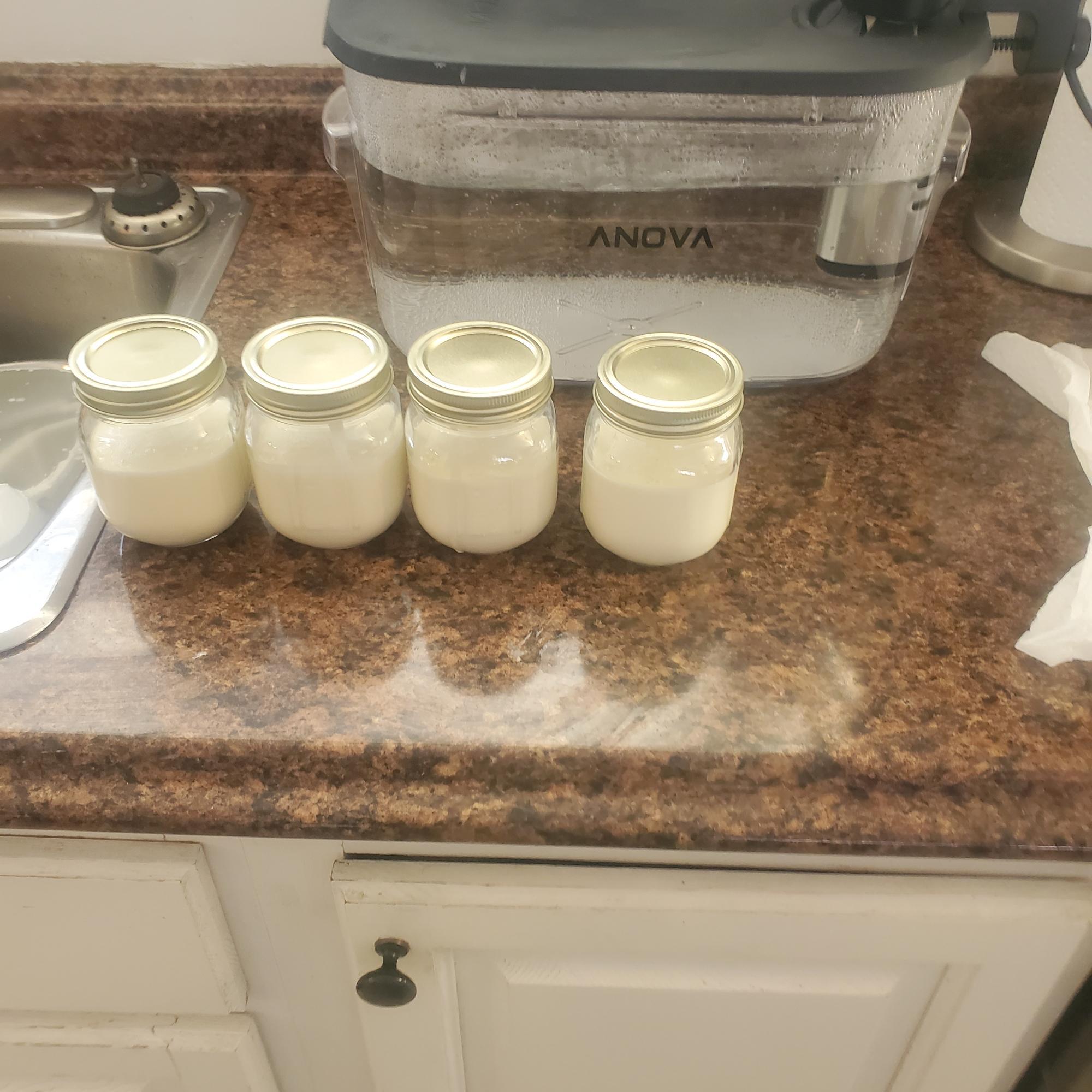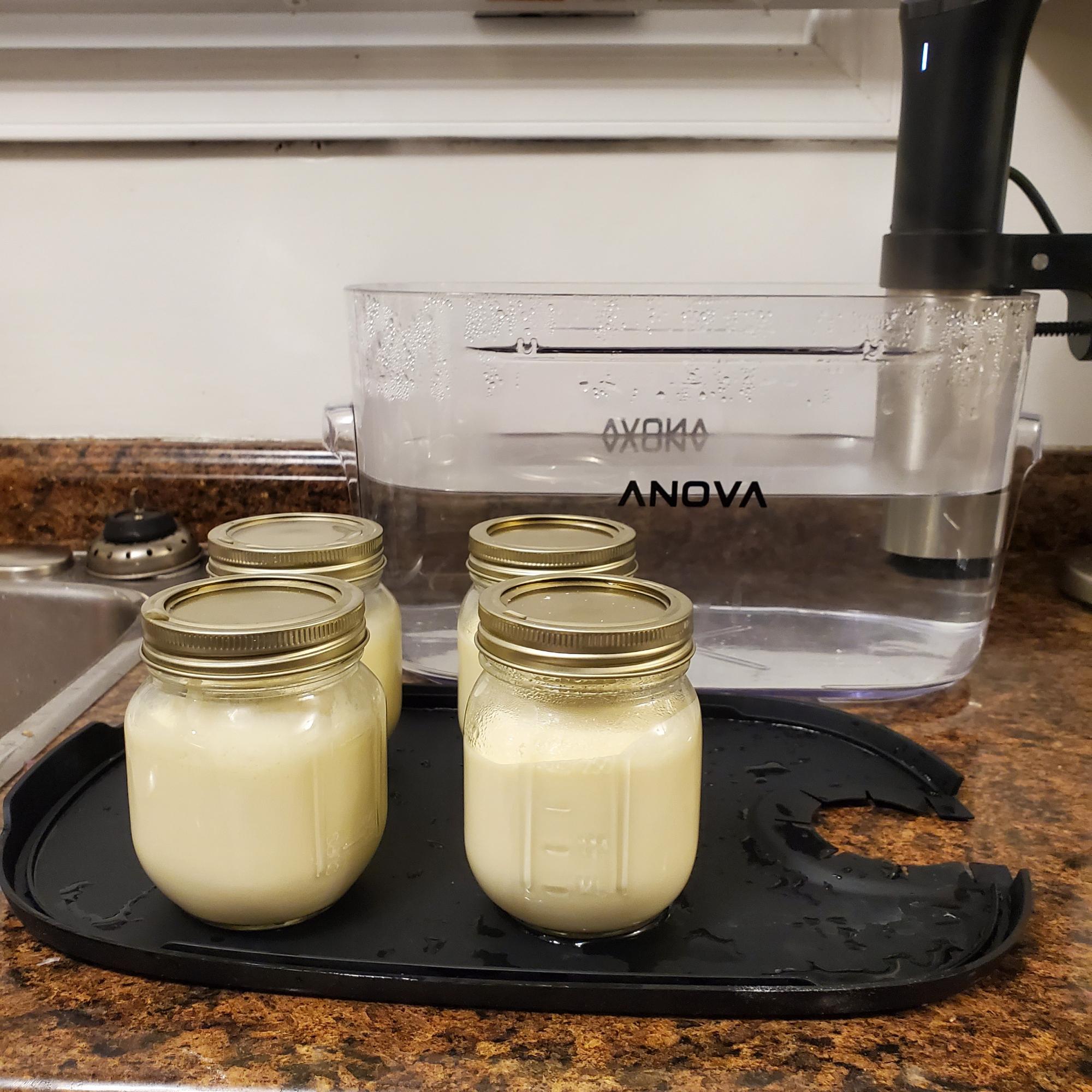 Set sous vide machine at 80° C or 176 f. In a mixer combined cream cheese sugar salt eggs and vanilla mix until ingredients are combined and cream cheese is softened add in buttermilk mix again until ingredients are combined. Fill jars 3/4 full, use fingertips to gently close the jars without tightening. This allows air to escape. Add jars to bath for 90 min.