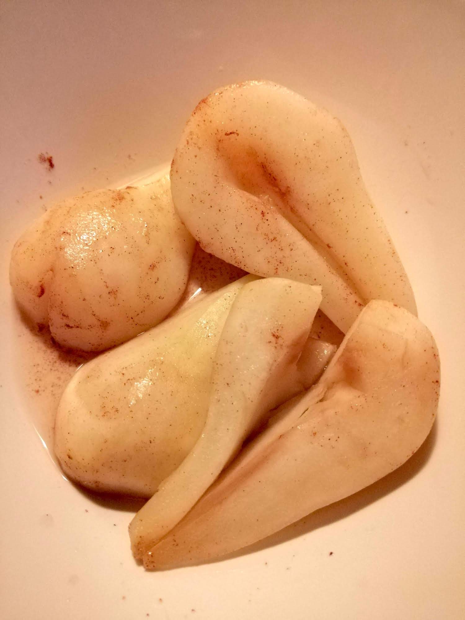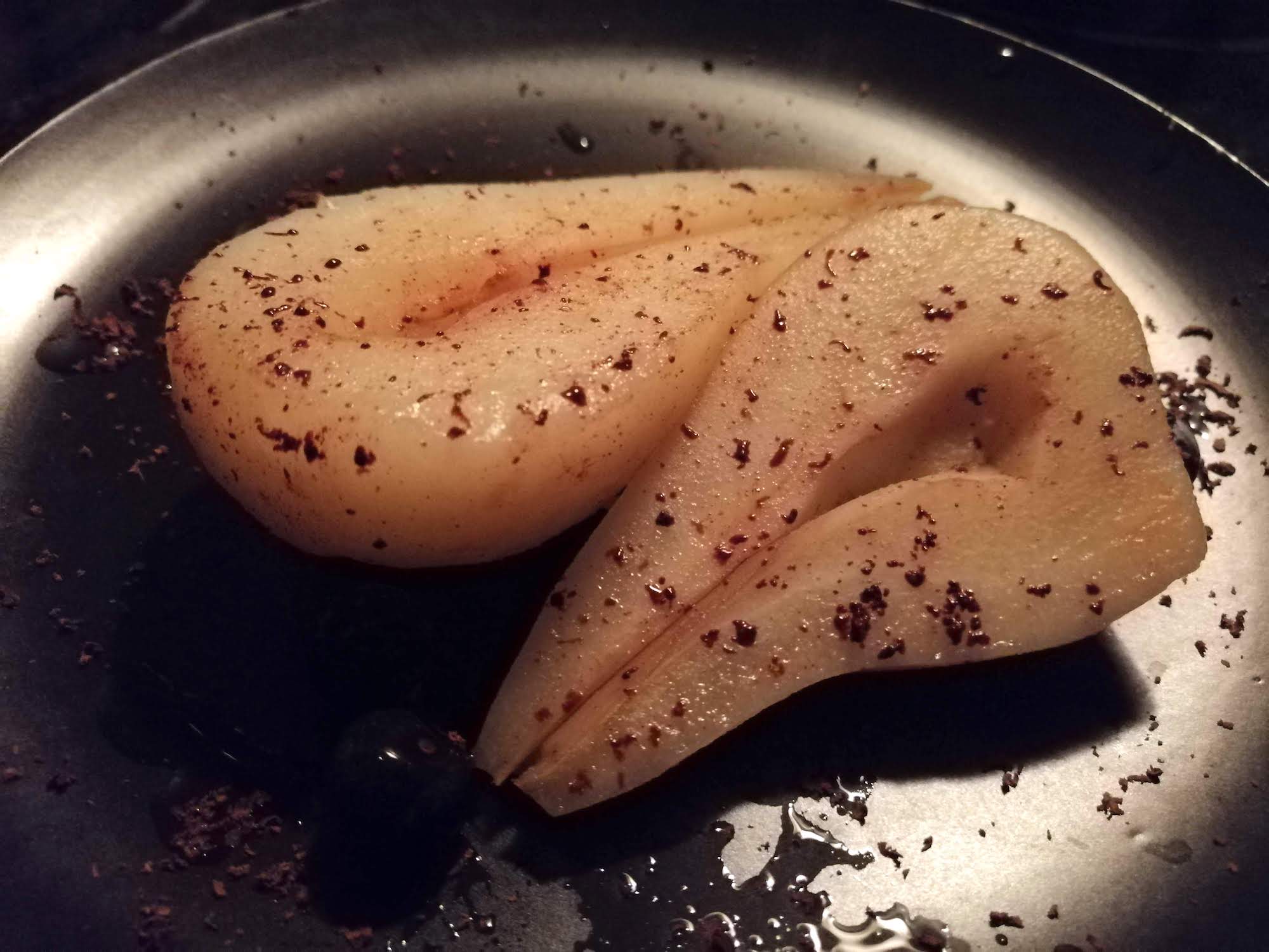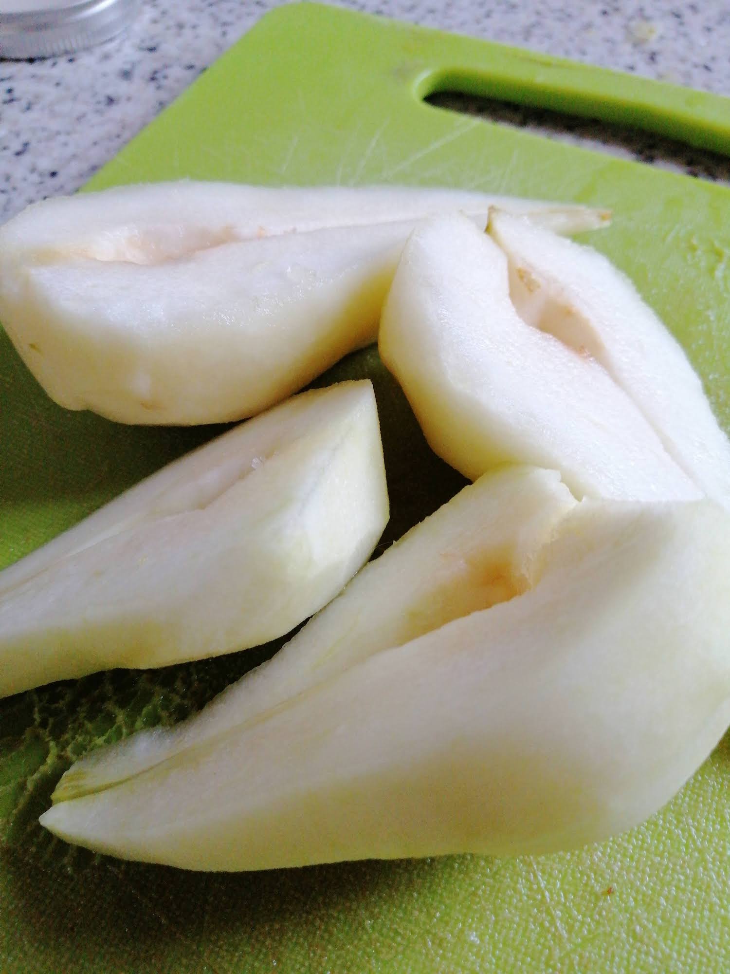 Épluchez et coupez vos poires en 2 puis déposez-les quelques minutes dans un mélange eau/jus de citron