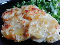 Un bon gratin de pommes de terre, facile à préparer et parfait pour un déjeuner accompagné d'une salade. Un gratin dauphinois avec du fromage en plus.