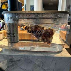 This receive takes a nice size octopus cut into pieces, marinaded with cumin, garlic, black garlic salt and pepper. To finish by searing with lemon juice.