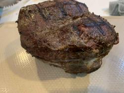 Apply a thin layer of mayo to all sides of the meat. Place on BBQ turning every minute or so, so that all sides are nicely browned. Remove from BBQ and enjoy!!