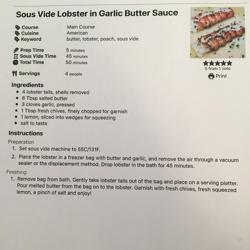 Sous Vide Lobster Tail in Garlic Butter Sauce