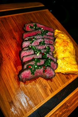 Sauce: Chop handful of parsley, 1/2 of Fresno pepper and 5 small cloves of garlic. Add 3 tablespoons of olive oil and 1 tablespoon of red wine vinegar into the mix. Salt and pepper to taste. Leave sauce for 1 hour in fridge to release all aromas and flavors.