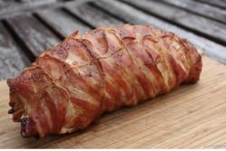 - Using a 7lb turkey breast, place lots of butter under the skin, wrap it in bacon and butcher tie it together.