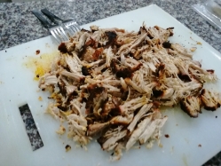 Jetzt kurz ruhen lassen und dann mit zwei Gabeln auseinanderpflücken.