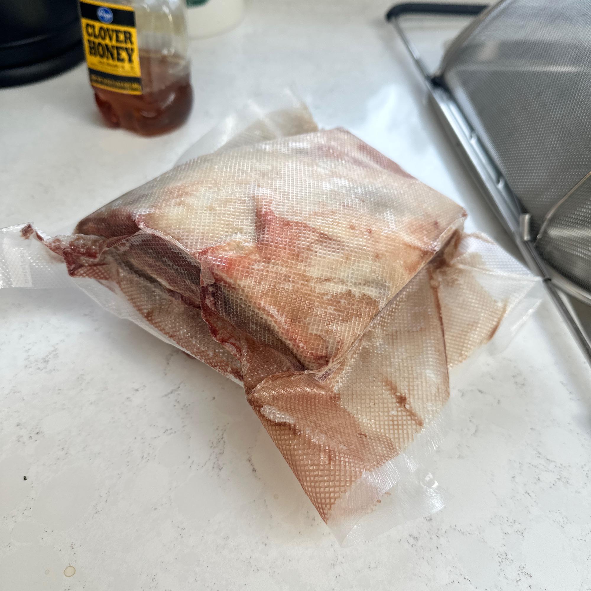 Sous Vide the Lamb • Preheat a water bath to 125°F (52°C). • Vacuum seal the rack of lamb or place it in a Ziploc freezer bag using the water displacement method. • Sous vide for 7 hours. If cooking from frozen, add 30 to 45 minutes.