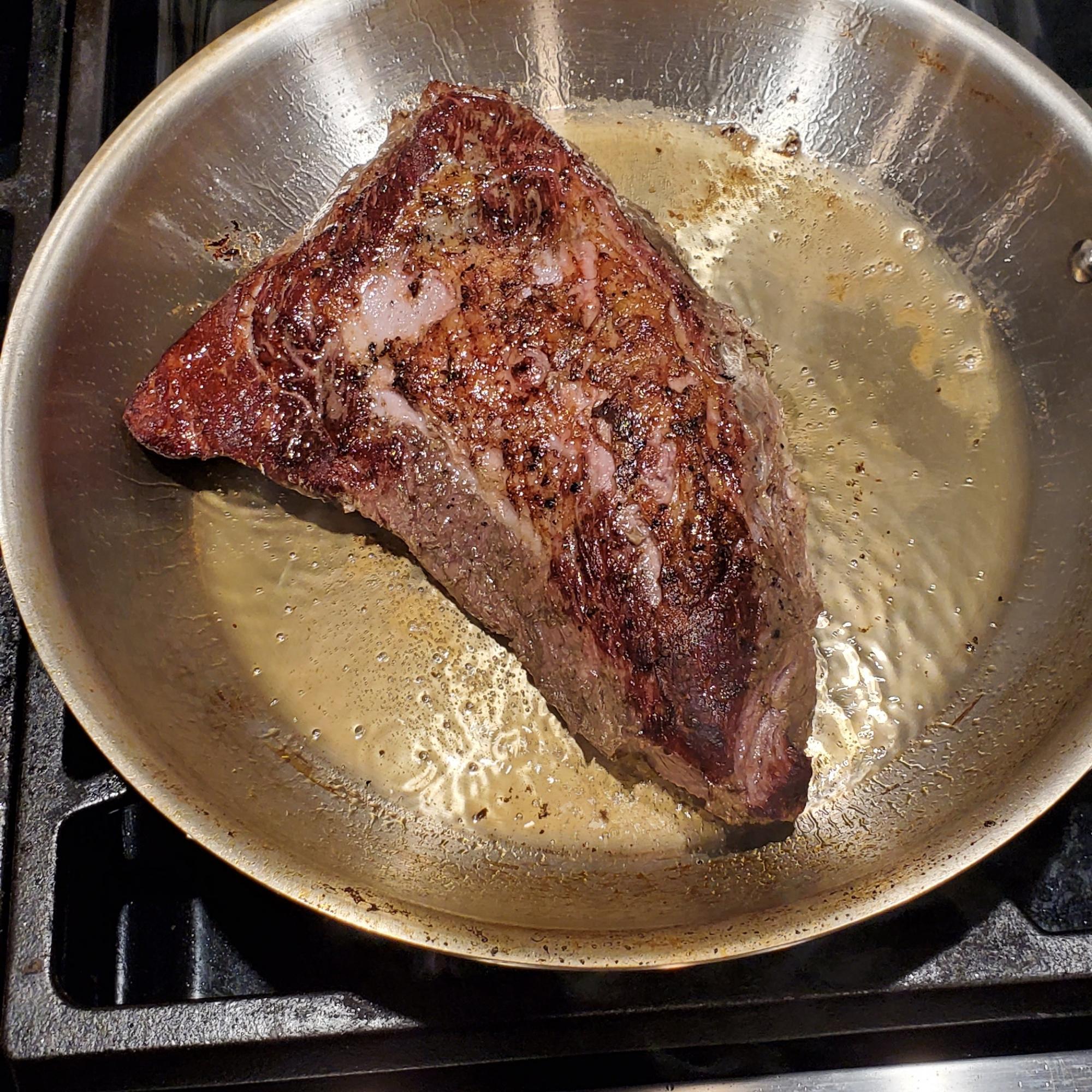 Perfect medium-rare tri-tip, cooked 24hrs and then finished with a hot cast iron pan.