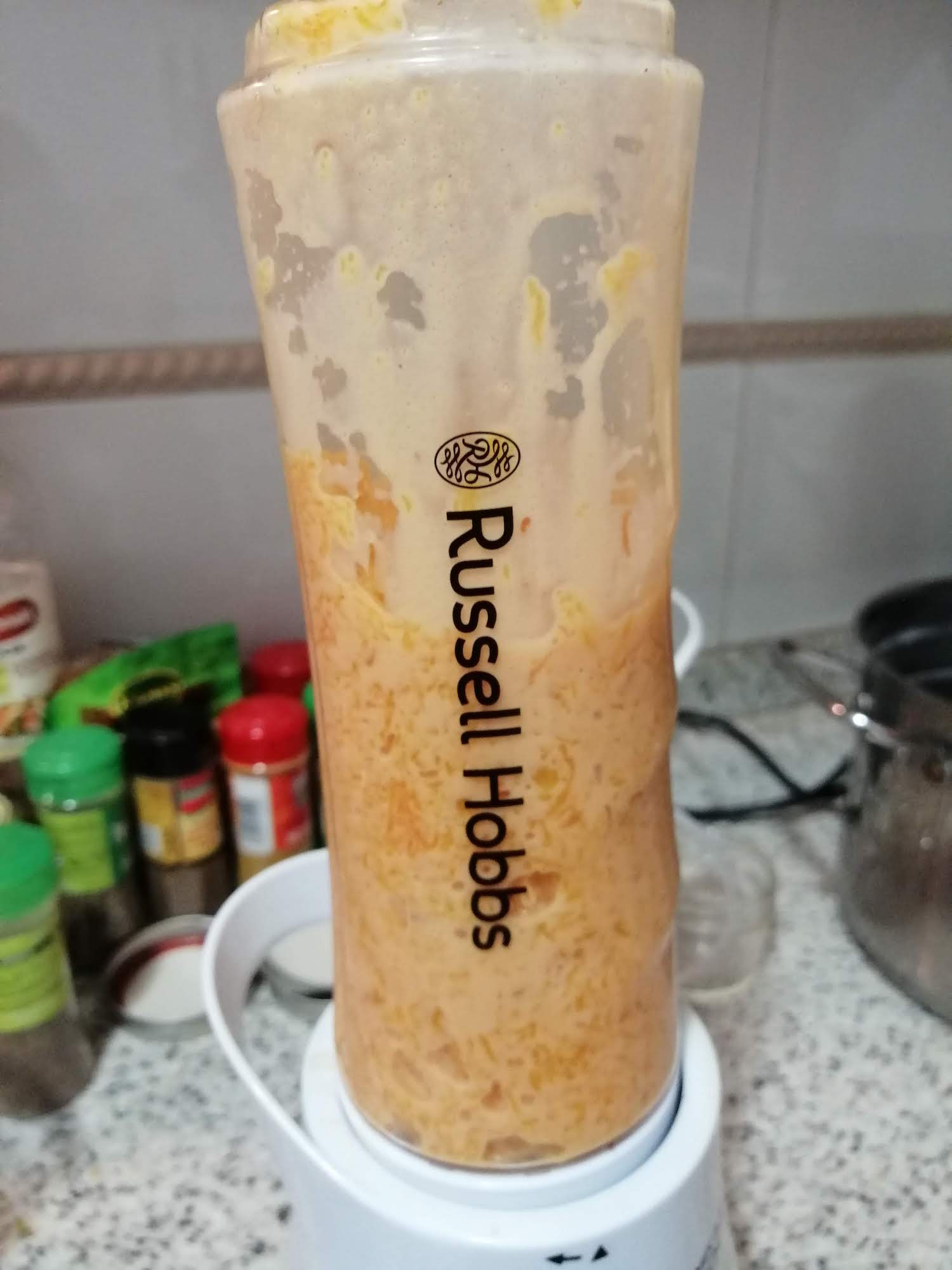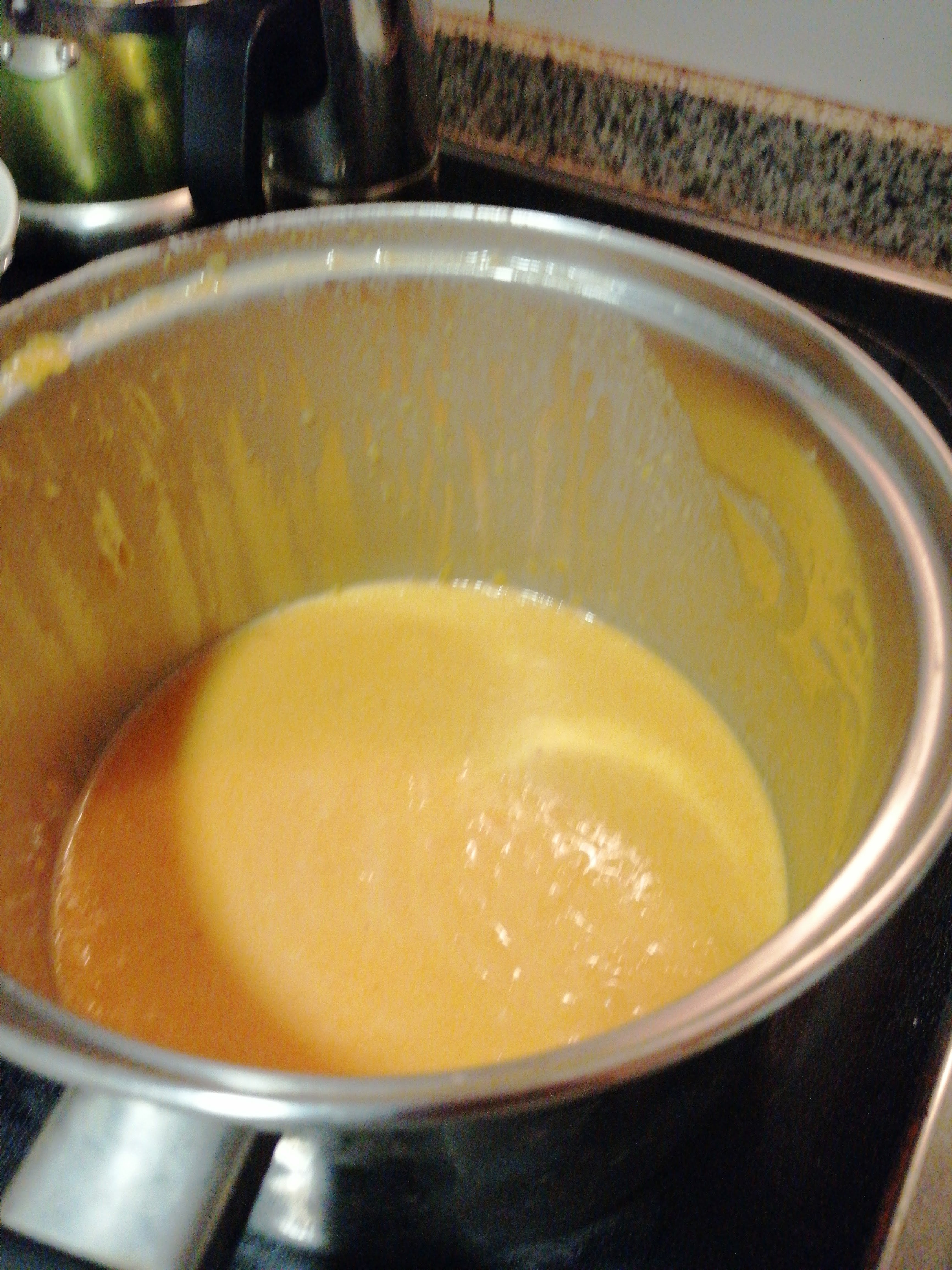 Mettez sous vide avec le curry, lait de coco, piments et beurre.
