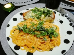 Marinate the chicken with garlic powder as well as a little salt and pepper, put it in the vacuum bag or freezer bag and seal under water immersion. Then cook for 90 minutes at 63°C.