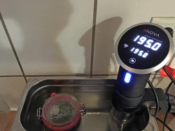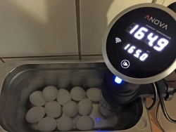 Set your Anova Precision Cooker to 165F/74C.